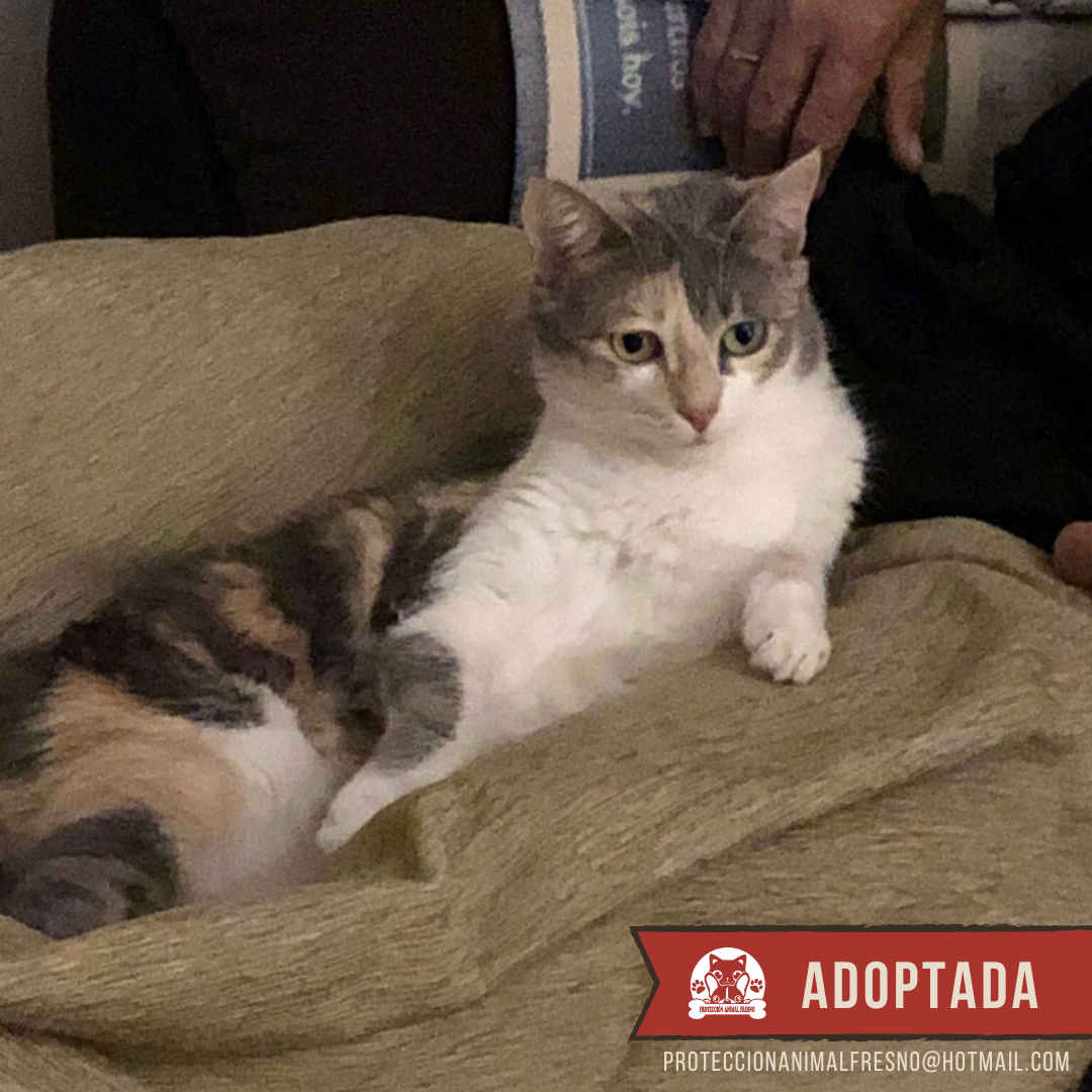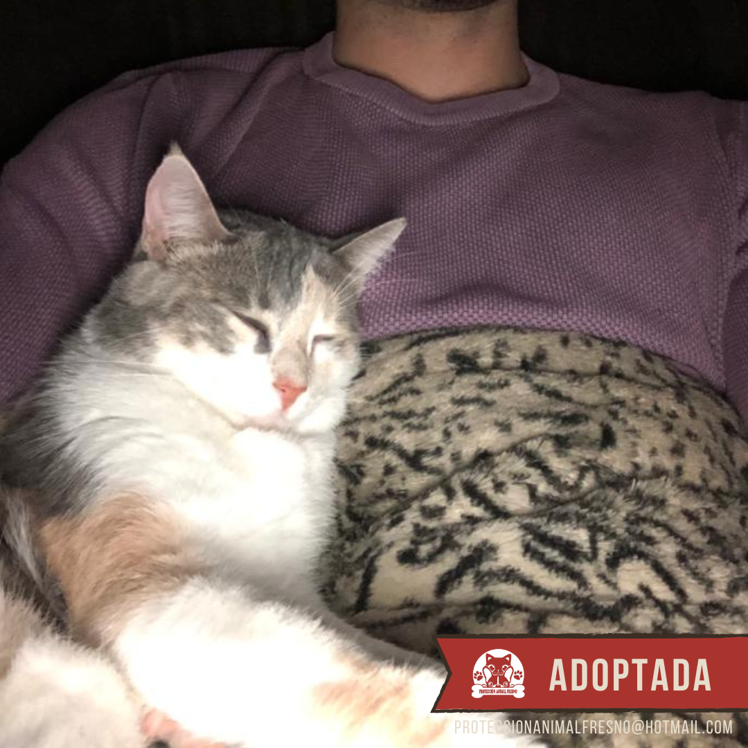 Maya nació en una casa, de eso estamos seguras por su carácter tan cariñoso e inocente, pero fue abandonada junto a sus dos bebés recién paridos en una colonia felina. En cuanto nos dimos cuenta de que había una nueva gatita muy asustada, que además se había refugiado junto a sus crías en unas alcantarillas cercanas a la colonia y a orillas de una carretera, rápidamente nos movilizamos. Capturamos a Maya para ser esterilizada y sus bebés. Durante su recuperación nos dimos cuenta de que Maya era demasiado sociable para sobrevivir en una colonia felina, necesitaba el calor de un hogar, así que decidimos buscarle una oportunidad. Sus bebés tuvieron suerte rápido y fueron adoptados conjuntamente, pero ella no tuvo tanta. Pasaron meses y meses en los que nuestra dulce Maya parecía invisible. ¡Hasta que un día su oportunidad apareció! Por fin alguien había visto en Maya todo lo que vimos nosotras en un principio: una gata guapísima, dulce y amorosa. Ahora Maya vive como una reina, despertando cada mañana sabiendo que es querida y cuidada.