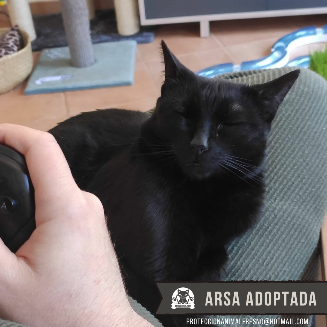 La ve rdad es que tenía mis dudas porque acabábamos de perder a nuestra querida Vivi (una panterita con leucemia)... Pero al final decidimos que adoptaríamos a dos panteritas más dado que nos dijeron que eran las que más tardaban en encontrar familia. Arsa y Petite son muy diferentes entre sí, pero se hicieron querer desde el primer momento tal y como son. Creo que adoptar a un gato (o dos o tres) te enseña a querer de verdad y a percibir el cariño de forma diferente. Nosotros estamos enamorados de la forma que tiene Petite de acompañarte durante el día y la forma que tiene Arsa de darte los buenos días. Todos son distintos y hace mucha ilusión empezar a conocer cómo son realmente y ver cómo ellos van considerándote parte de la familia. El procedimiento de adopción fue rápido y sencillo. Simplemente hay que querer lo mejor para el gato y no verlo como un juguete. Además me disteis muchas facilidades a pesar de residir lejos de la protectora. En cuanto a la adaptación de las panteritas: Arsa ya se adueñó de la casa nada más llegar y a Petite le costó un poco más porque es más tímida. Pero a ninguna le costó más de una semana. Me gustaría destacar que ellas eran gatas adultas cuando llegaron. Hay que darles una oportunidad y tener un poco de empatía para que jueguen felices por casa al poco tiempo.