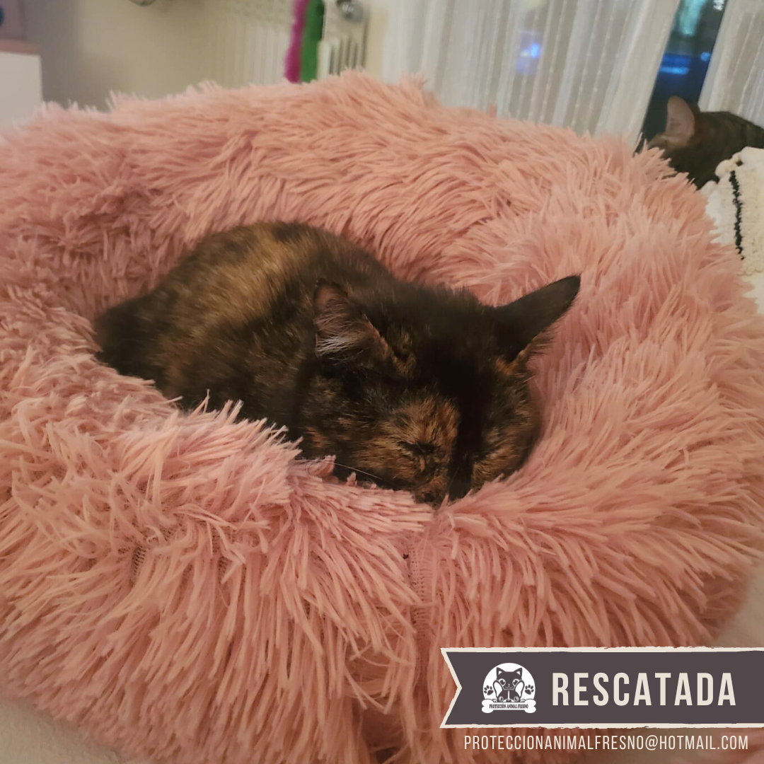 Hace 9 meses adopté a Zoe,una gatita maltratada con la esperanza de que fuera una gatita completamente feliz, que empezara a confiar en que si había humanos que podían quererla y tratarla como la princesa que es y puedo decir que lo he conseguido.Yo no pasaba por un momento emocional fácil, y la llegada de Zoé a casa fue sin duda, mi mayor rayo de luz. Le costó adaptarse al principio, confiar, pero a día de hoy, es cariñosa, tremendamente lista, juguetona y no hay ni un solo día que no me pida su yogur favorito. Adoptar a Zoe sin duda fue la mejor decisión que tomé.